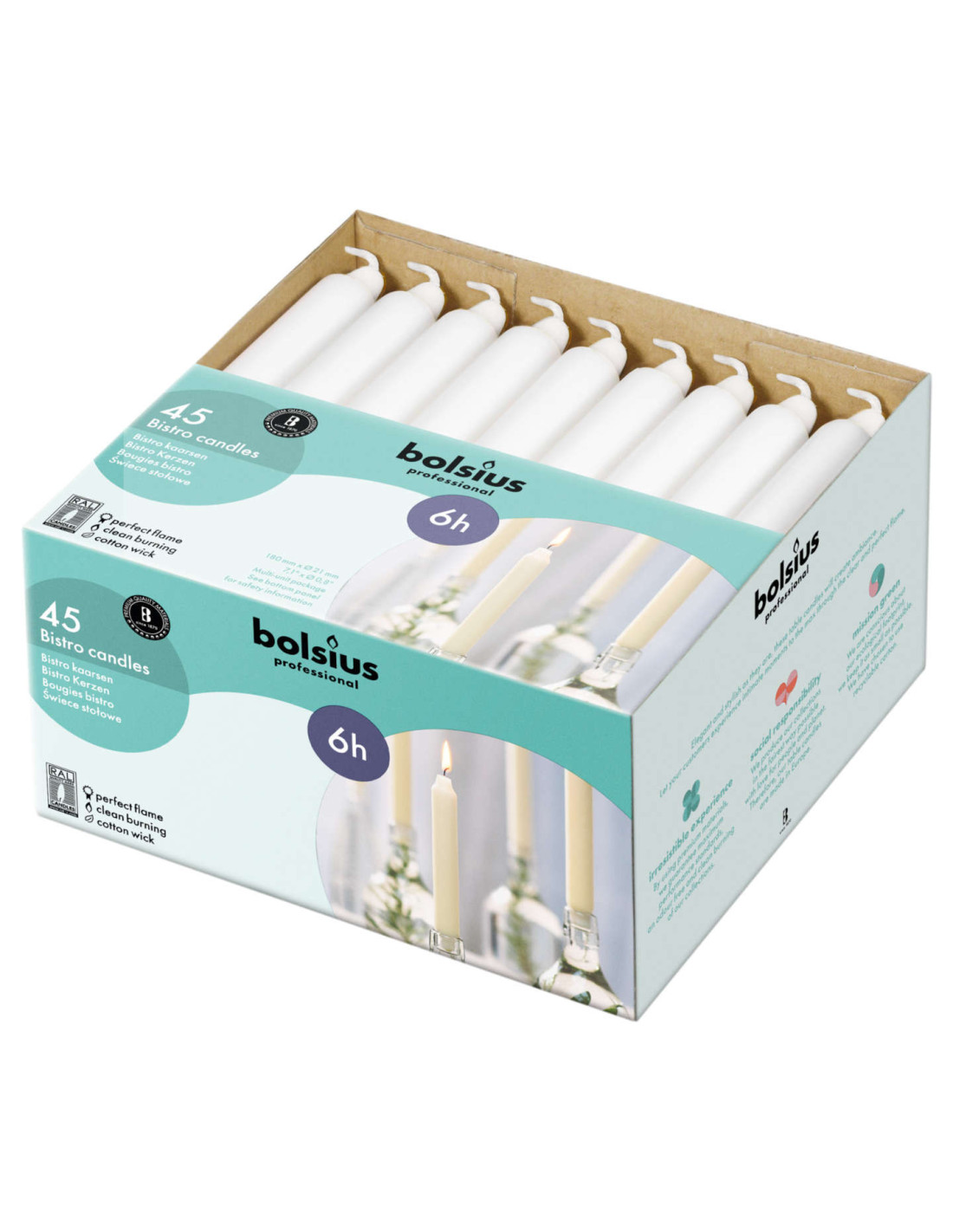 Świece stołowe marki Bolsius pozwalają na stworzenie wyjątkowej atmosfery w dowolnym pomieszczeniu. Świece Bolsius są dostępne w różnych formach opakowań, na których komunikowany jest czas palenia. Zapewniają najwyższa jakość, piękny płomień, stabilne spalanie i wypalanie do końca.
