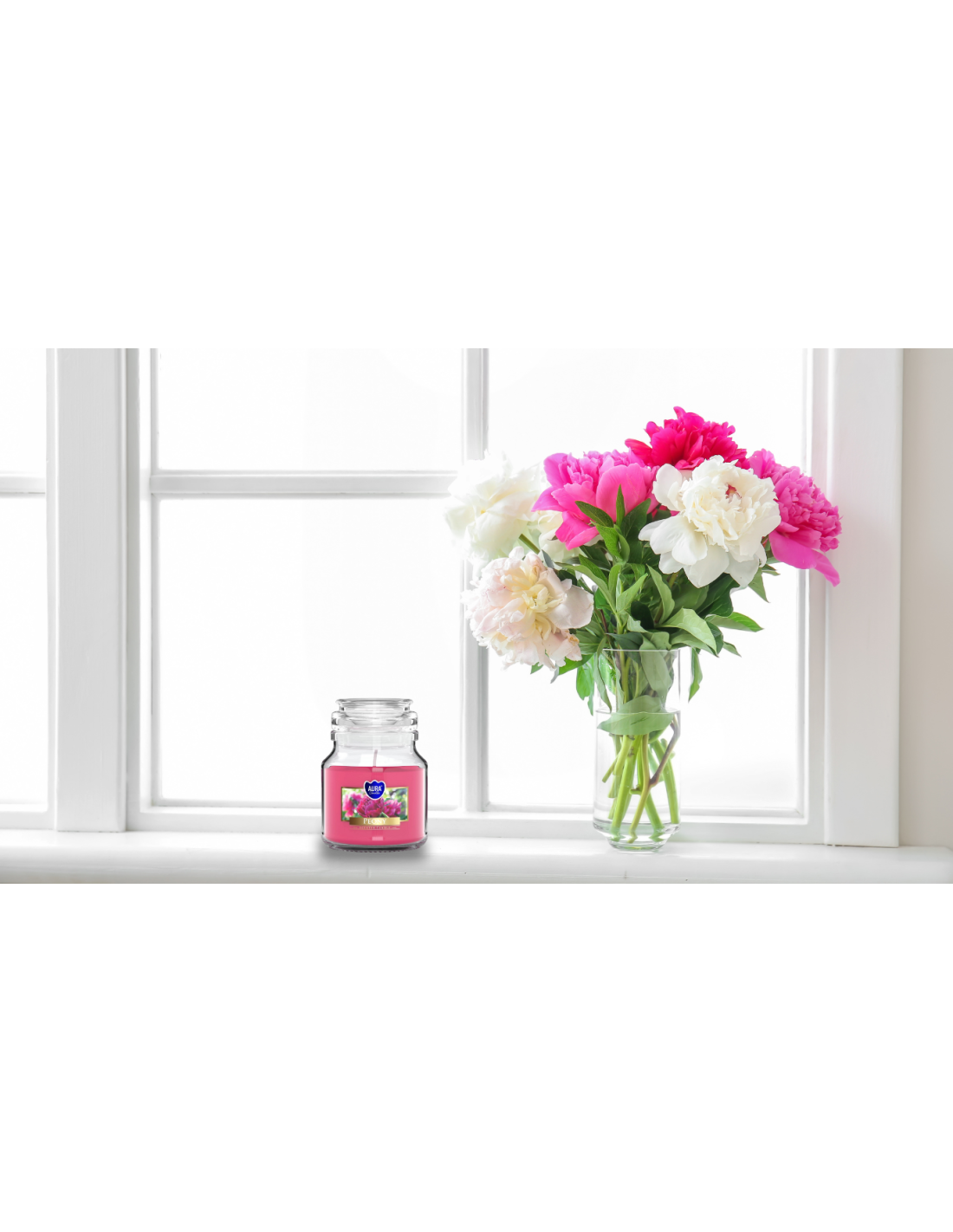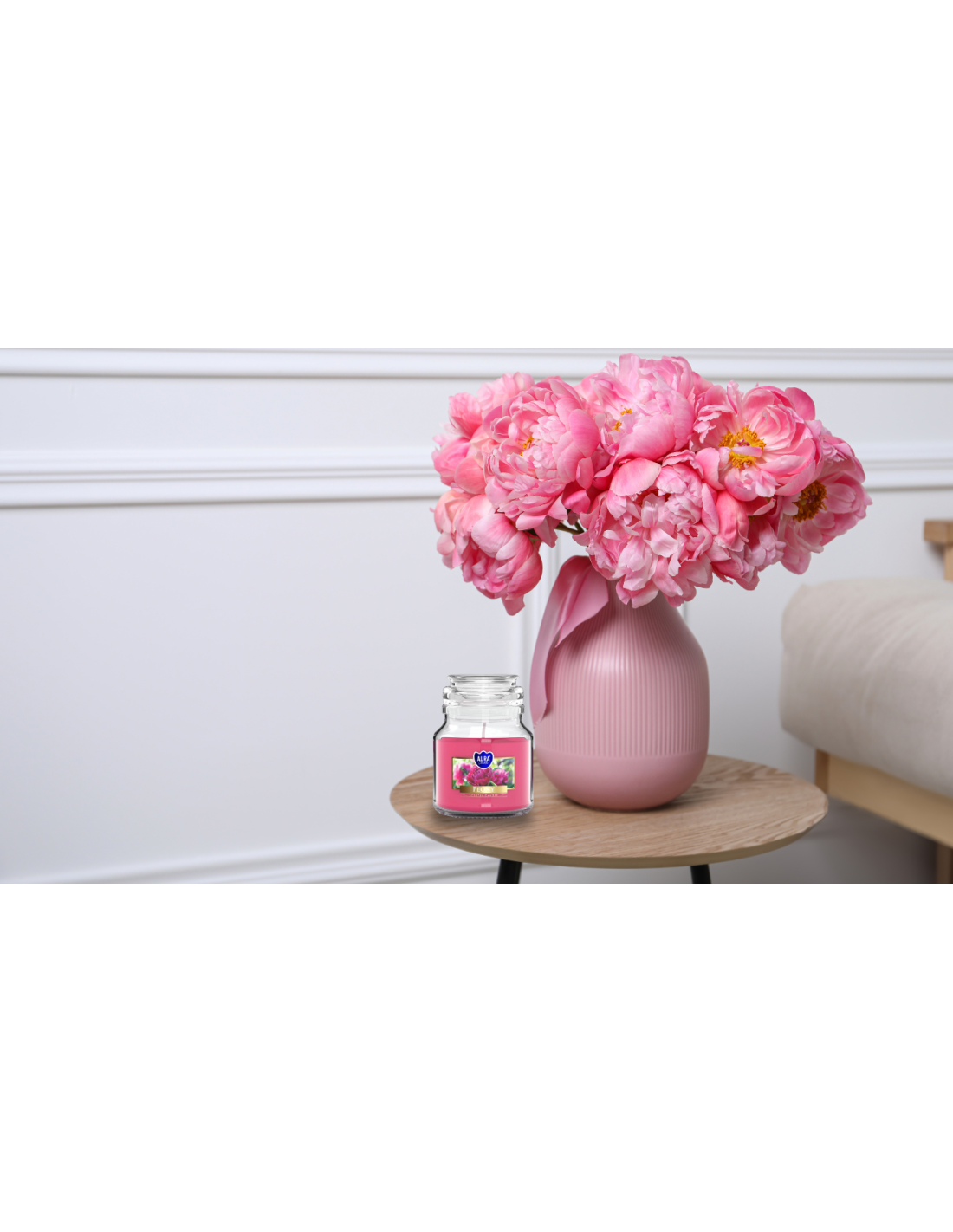 Świeca zapachowa marki Aura o delikatnym, świeżym i kwiatowym aromacie, który kojarzy się z wiosenną radością i świeżością powietrza. Jej zapach jest subtelny, z lekko wyczuwalnymi słodkimi nutami, a całość tworzy mieszankę, która wprowadza do wnętrza uczucie elegancji i odświeżonej atmosfery.