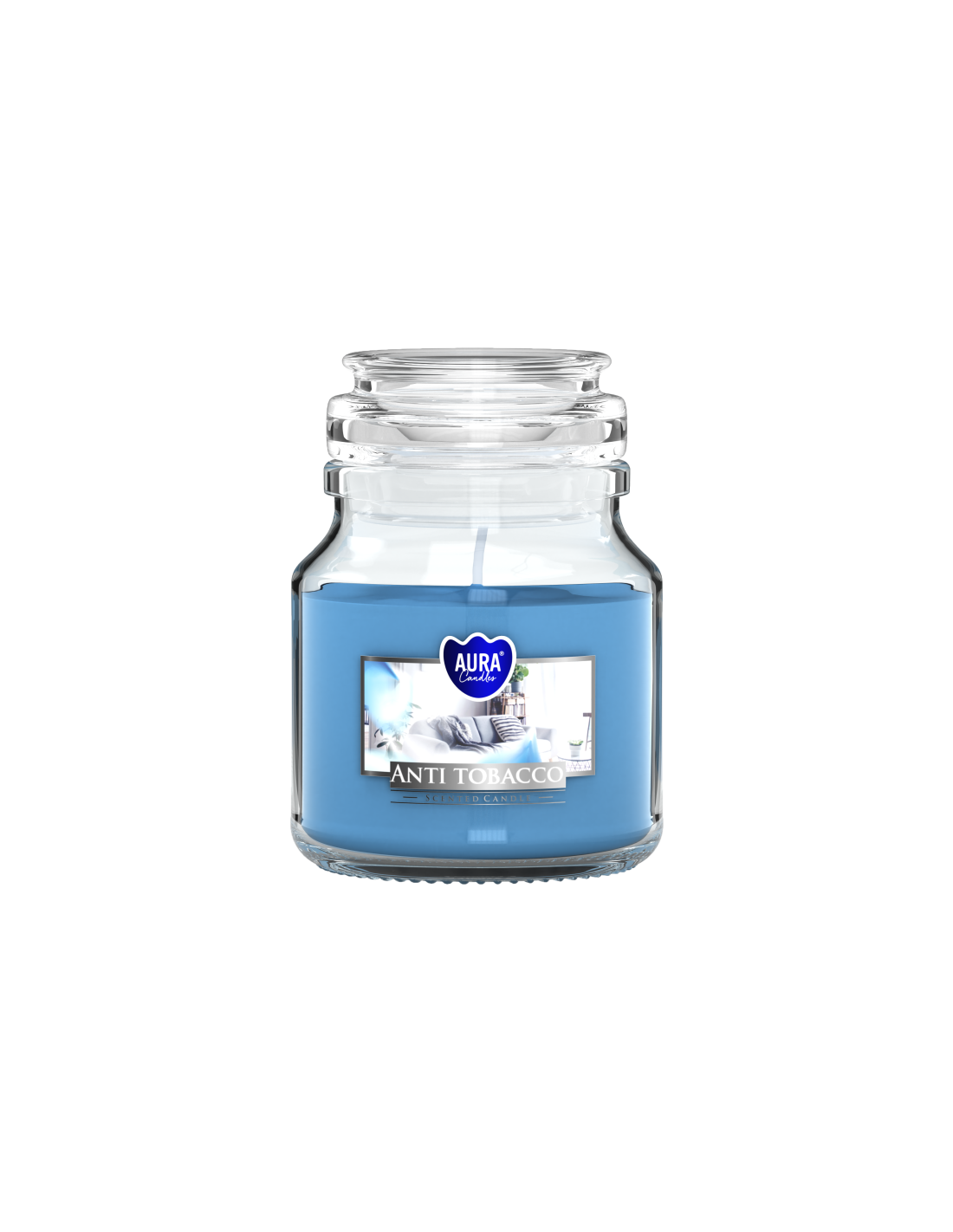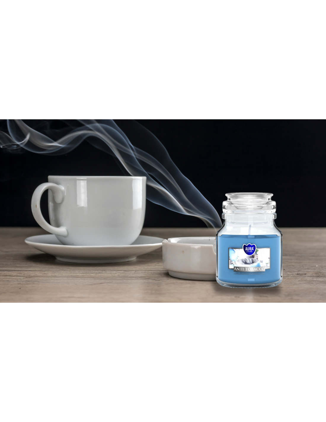 Świeca zapachowa marki Aura o specyficznych, ziołowych, lekko mentolowych i drzewnych aromatach. Jej zapach pozwoli pozbyć się z pomieszczenia niechcianego zapachu tytoniu. Kwiatowo-cytrusowe nuty zapachowe kojarzą się z higieną i świeżością