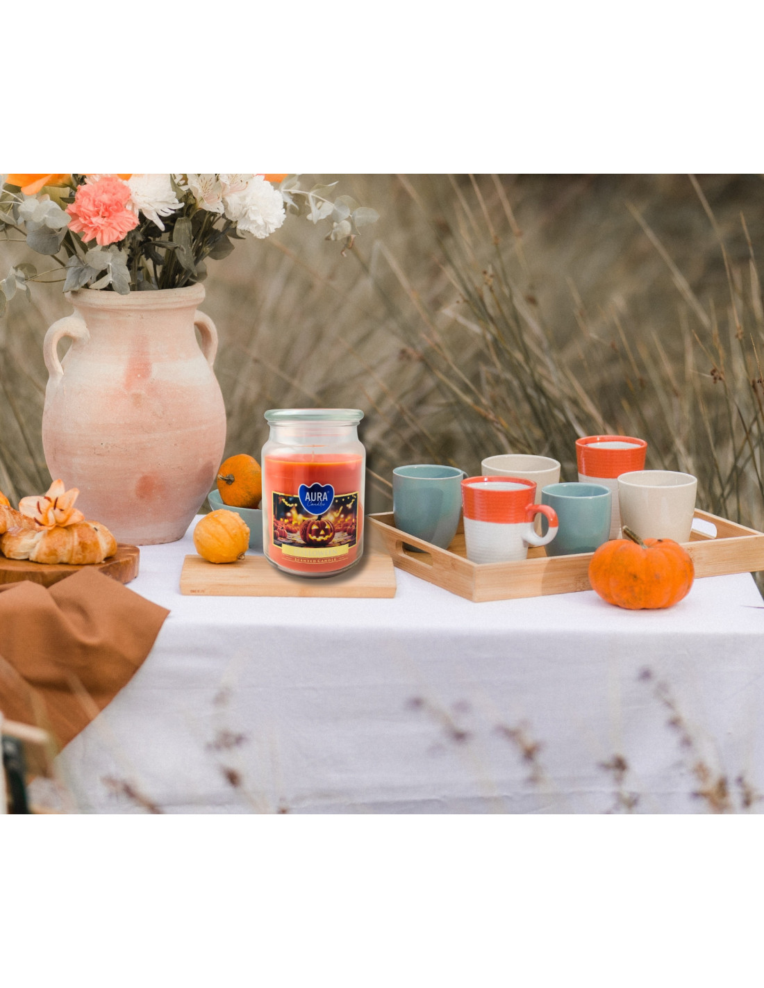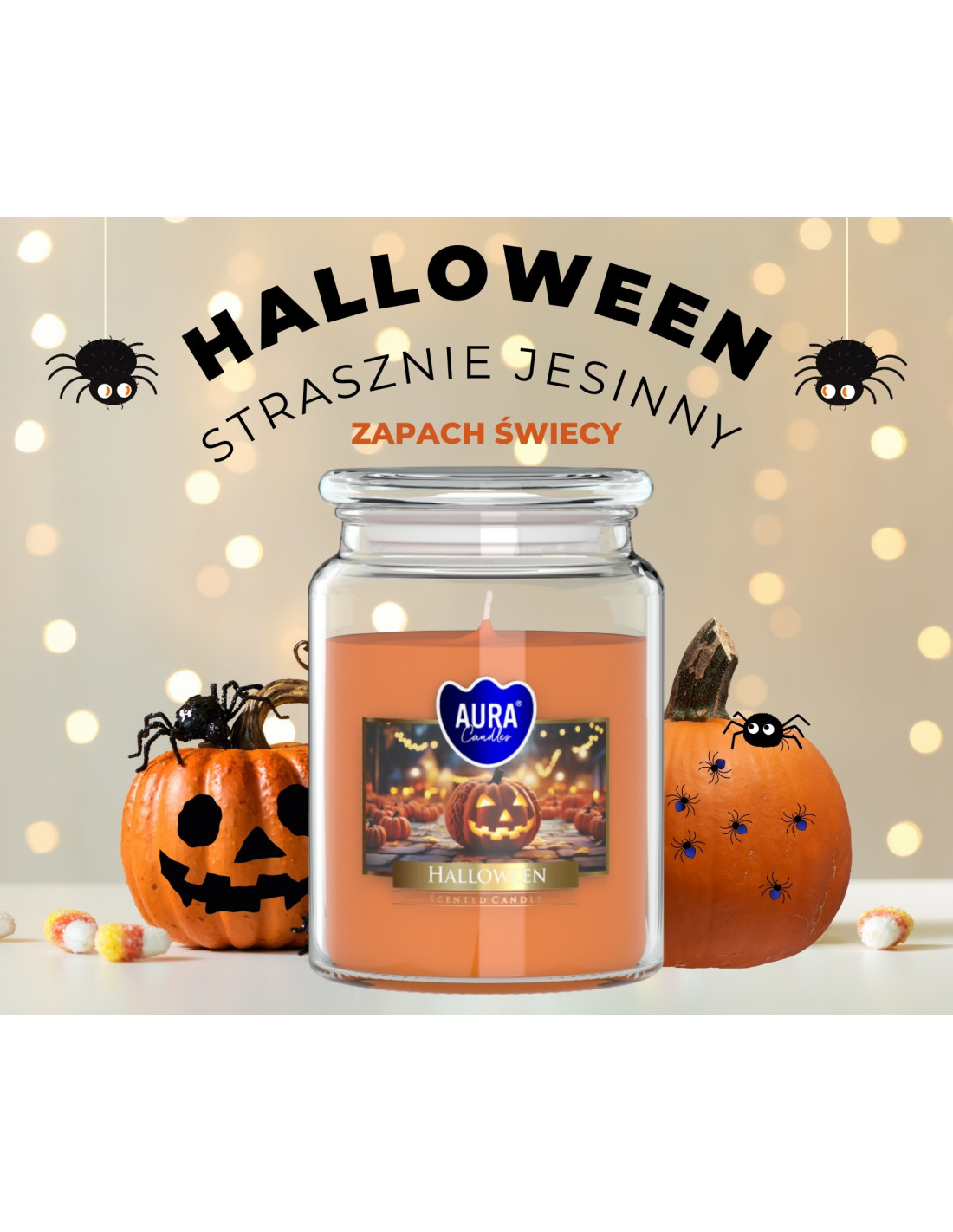 Świeca zapachowa Halloween marki Aura wprowadza magiczny nastrój tajemnicy i jesiennej nostalgii. Idealnie nadaje się na długie, chłodne wieczory. Jej ciepły blask i intrygujący aromat tworzą niepowtarzalną atmosferę, pełną czaru i niezwykłego klimatu.