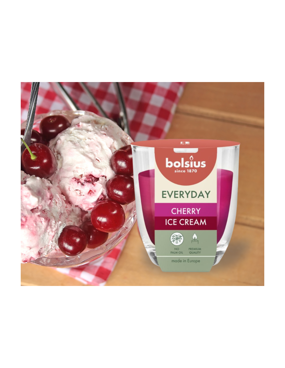 Świeca zapachowa w szkle BOLSIUS Everyday Cherry Ice Cream