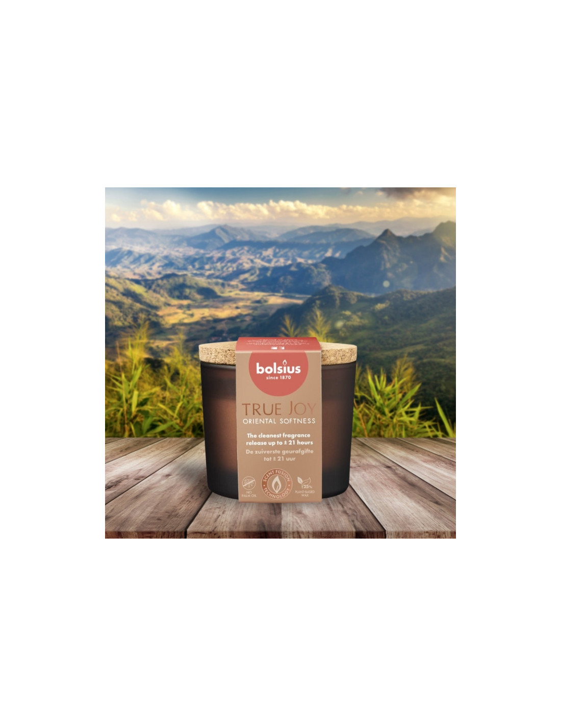Mała świeca zapachowa z korkiem marki Bolsius o bogatym, uspokajającym zapachu orientalnego ogrodu w pełnym rozkwicie. Idealne uwalnianie aromatu zapewnia technologia ScentFusion. To unikalne połączenie wyrafinowanej mieszanki zapachowej, najczystszego wosku i perfekcyjnego knota.