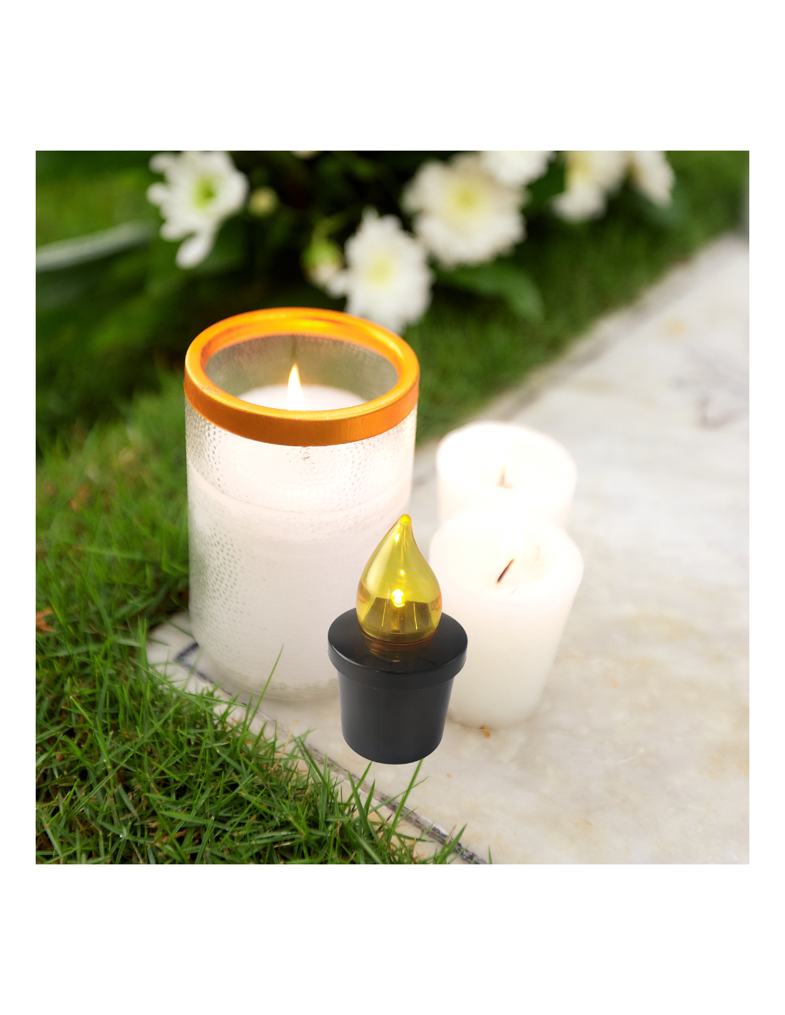 Wkłady LED to nowoczesna i praktyczna alternatywa dla tradycyjnych wkładów parafinowych i olejowych. Świecą znacznie dłużej – czas świecenia na jednym zestawie baterii może wynosić nawet 100 dni (czyli aż 2400 godzin). Działają niezależnie od warunków pogodowych, nie gasną na wietrze i nie wymagają osłony. Pozbawione są otwartego ognia i gorącego, kapiącego wosku, dzięki czemu są bezpieczniejsze – nie stwarzają ryzyka poparzeń, nie emitują niebezpiecznych oparów powstających podczas spalania parafiny, a także nie brudzą mebli ani nagrobków. Wykorzystane rozwiązania techniczne dają efekt prawdziwego płomienia świecy.