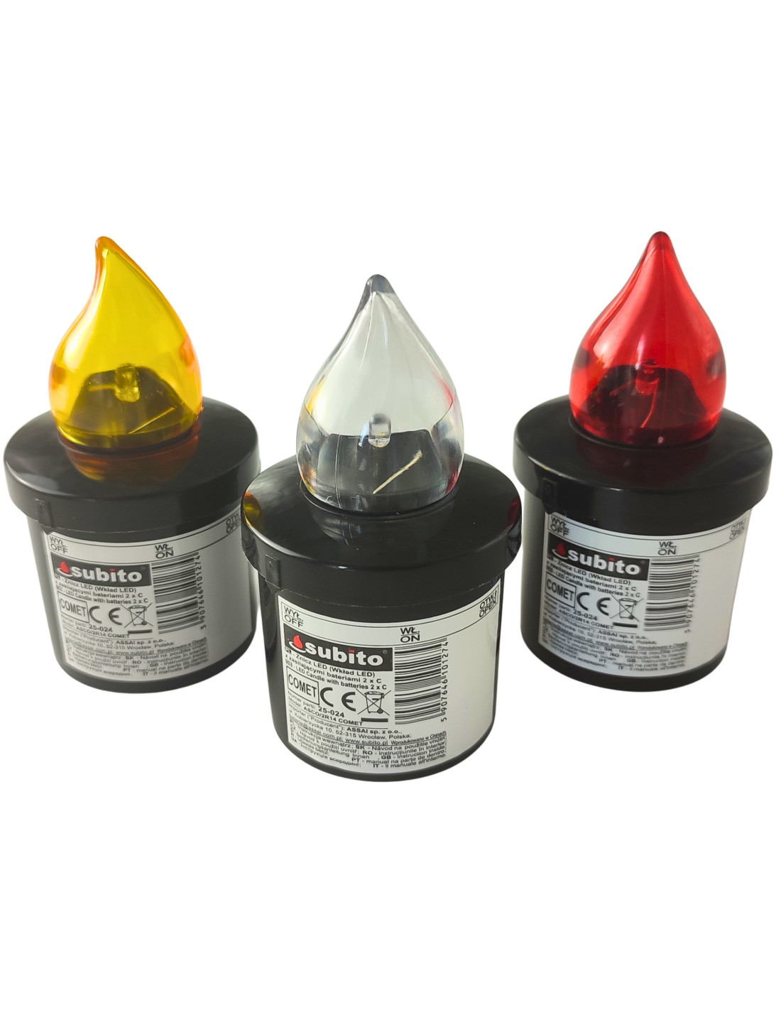 Klasyczny wkład LED do zniczy marki Subito zasilany bateriami R14. Pasuje do większości zniczy szklanych, plastikowych bądź różnego rodzaju kapliczek i latarenek. Wkład LED daje przyjemne światło, a bogaty wybór kolorów umożliwia stworzenie ciekawej iluminacji.
