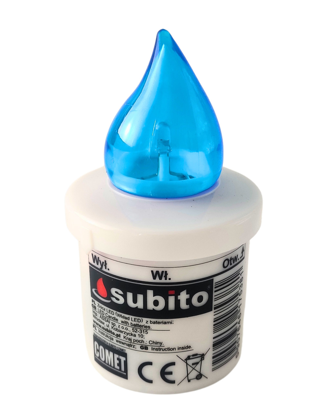 Klasyczny wkład LED do zniczy marki Subito zasilany bateriami R14. Pasuje do większości zniczy szklanych, plastikowych bądź różnego rodzaju kapliczek i latarenek. Wkład LED daje przyjemne światło, a bogaty wybór kolorów umożliwia stworzenie ciekawej iluminacji.
