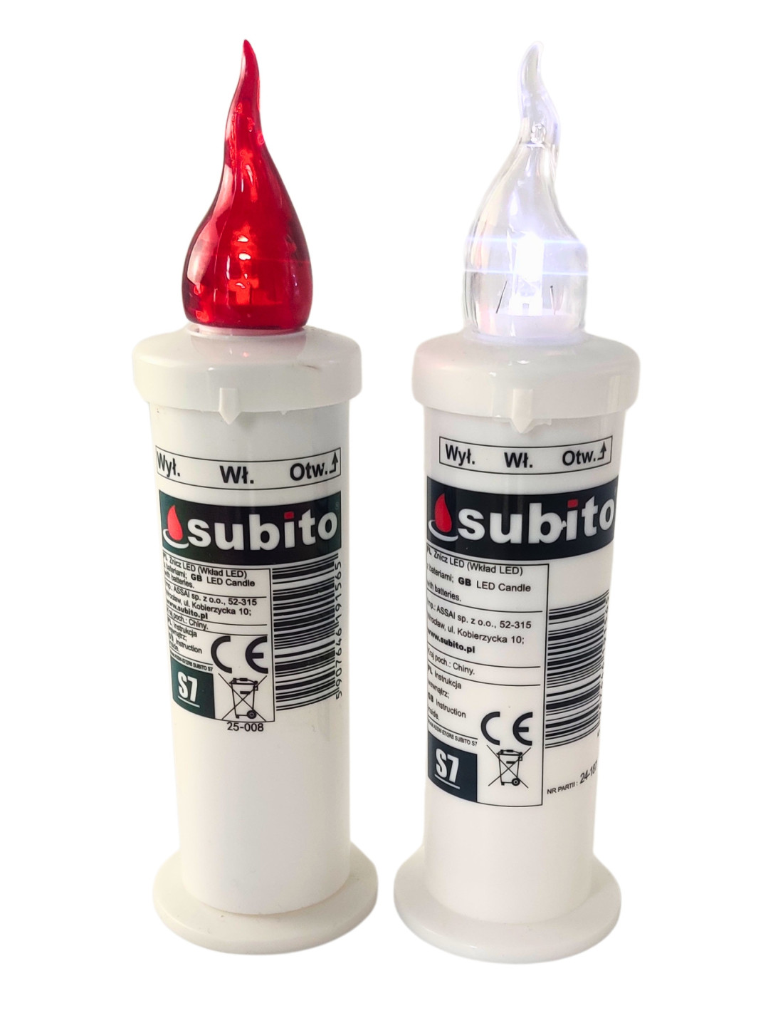 Klasyczny wkład LED do zniczy marki Subito zasilany bateriami R6. Pasuje do większości zniczy szklanych, plastikowych bądź różnego rodzaju kapliczek i latarenek. Wkład LED daje przyjemne światło, a bogaty wybór kolorów umożliwia stworzenie ciekawej iluminacji.