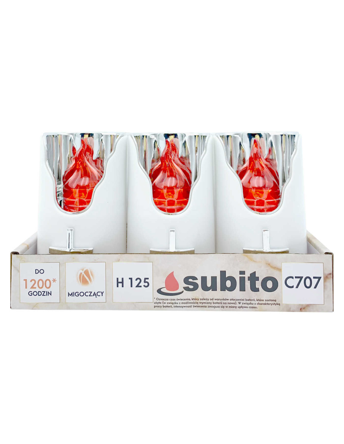 Znicze LED SUBITO są starannie i estetycznie wykonane. Świece LED SUBITO wykonane z tworzywa wiernie imitującego wosk, dają możliwość stworzenia wielu ciekawych aranżacji (stroiki, lampiony). Wykorzystane rozwiązania techniczne dają efekt prawdziwego płomienia świecy (m.in. ruchomy płomień świecy, migająca dioda).