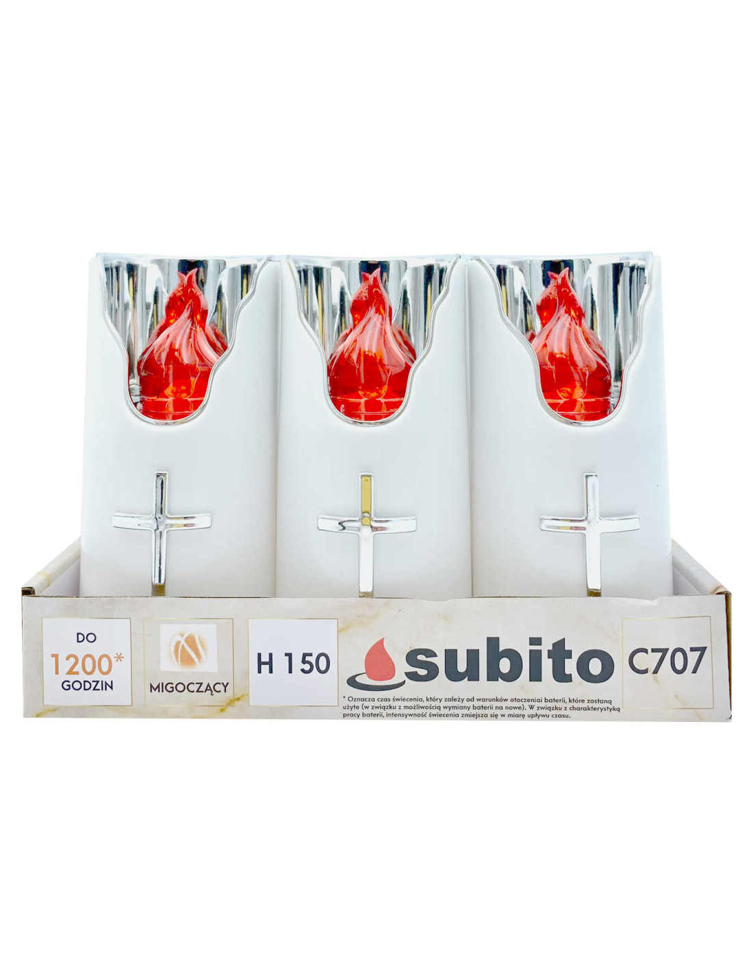 Znicze LED SUBITO są starannie i estetycznie wykonane. Świece LED SUBITO wykonane z tworzywa wiernie imitującego wosk, dają możliwość stworzenia wielu ciekawych aranżacji (stroiki, lampiony). Wykorzystane rozwiązania techniczne dają efekt prawdziwego płomienia świecy (m.in. ruchomy płomień świecy, migająca dioda).