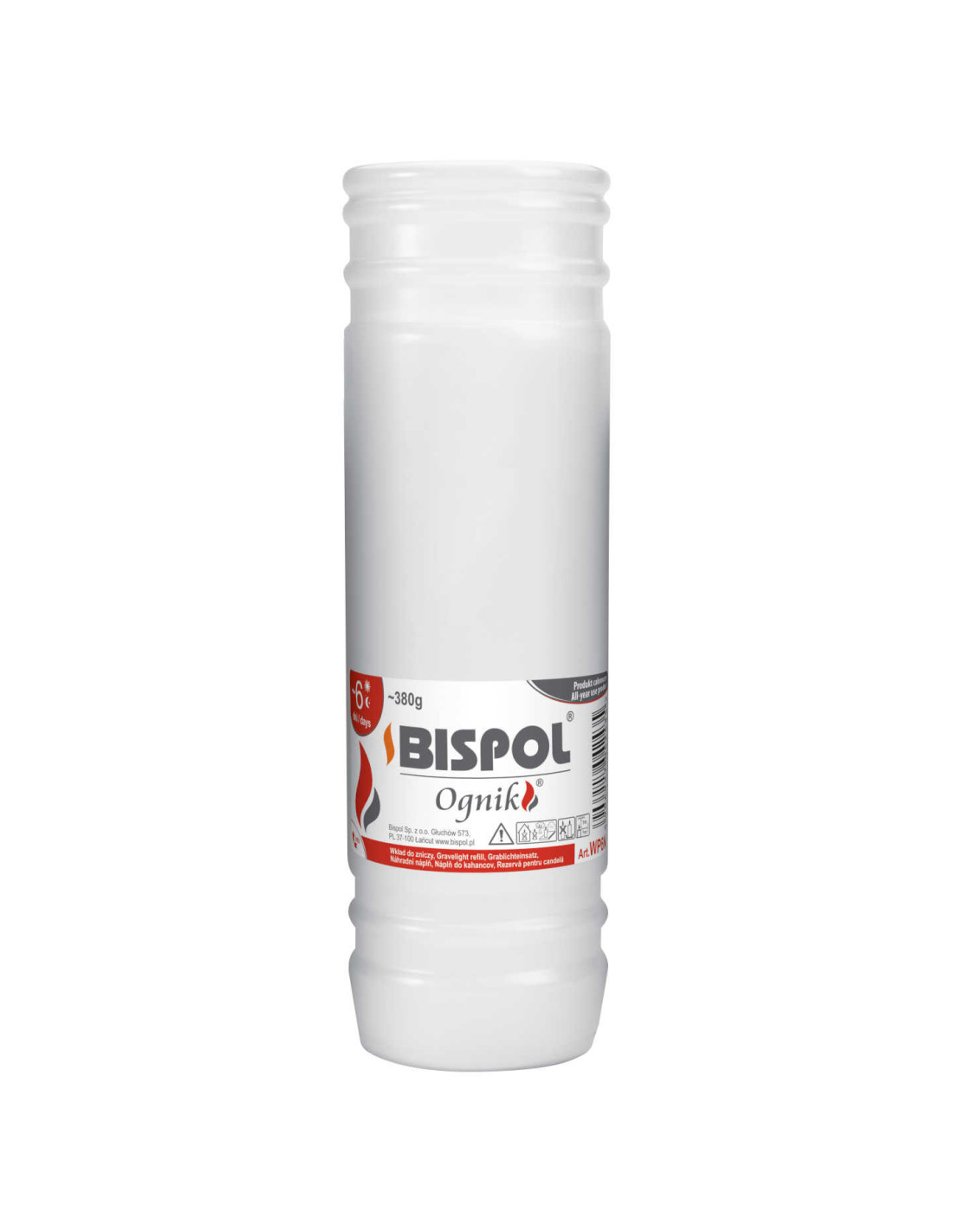 Wkłady do zniczy Bispol są idealnym rozwiązaniem całorocznym, sprawdzającym się w różnych warunkach pogodowych. Standardowe kształty oraz szeroka dostępność (różnorodność) wymiarów umożliwiają dopasowanie do wszystkich zniczy dostępnych na rynku. Wkłady Bispol wypalają się równomiernie dzięki umieszczeniu knota dokładnie w centralnym miejscu, a także dzięki zastosowaniu w produkcji najwyższej jakości surowca.