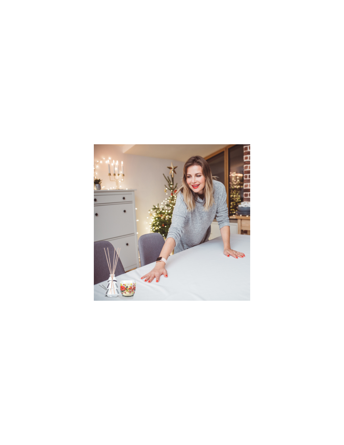 Wyjątkowy zestaw Wesołych Świąt to połączenie świecy zapachowej i dyfuzora, które wprowadzą do Twojego domu słodki aromat wanilii. Kolorowe zdobienia na świecy i dyfuzor w kształcie choinki przywołują na myśl magiczną atmosferę świąt.