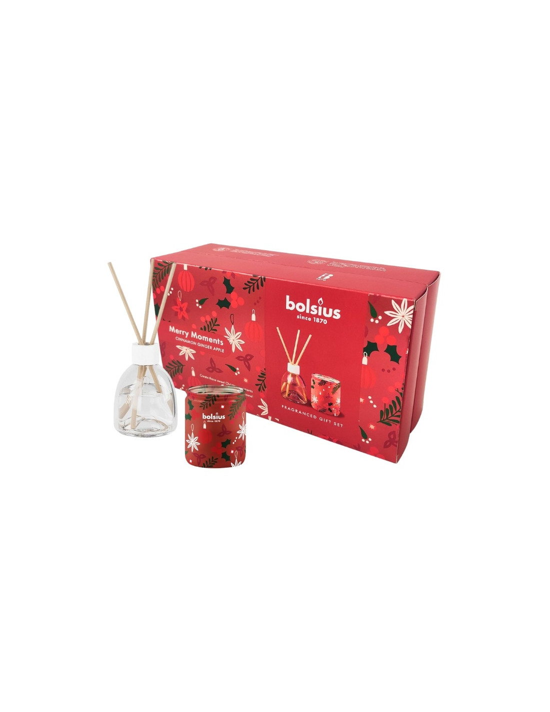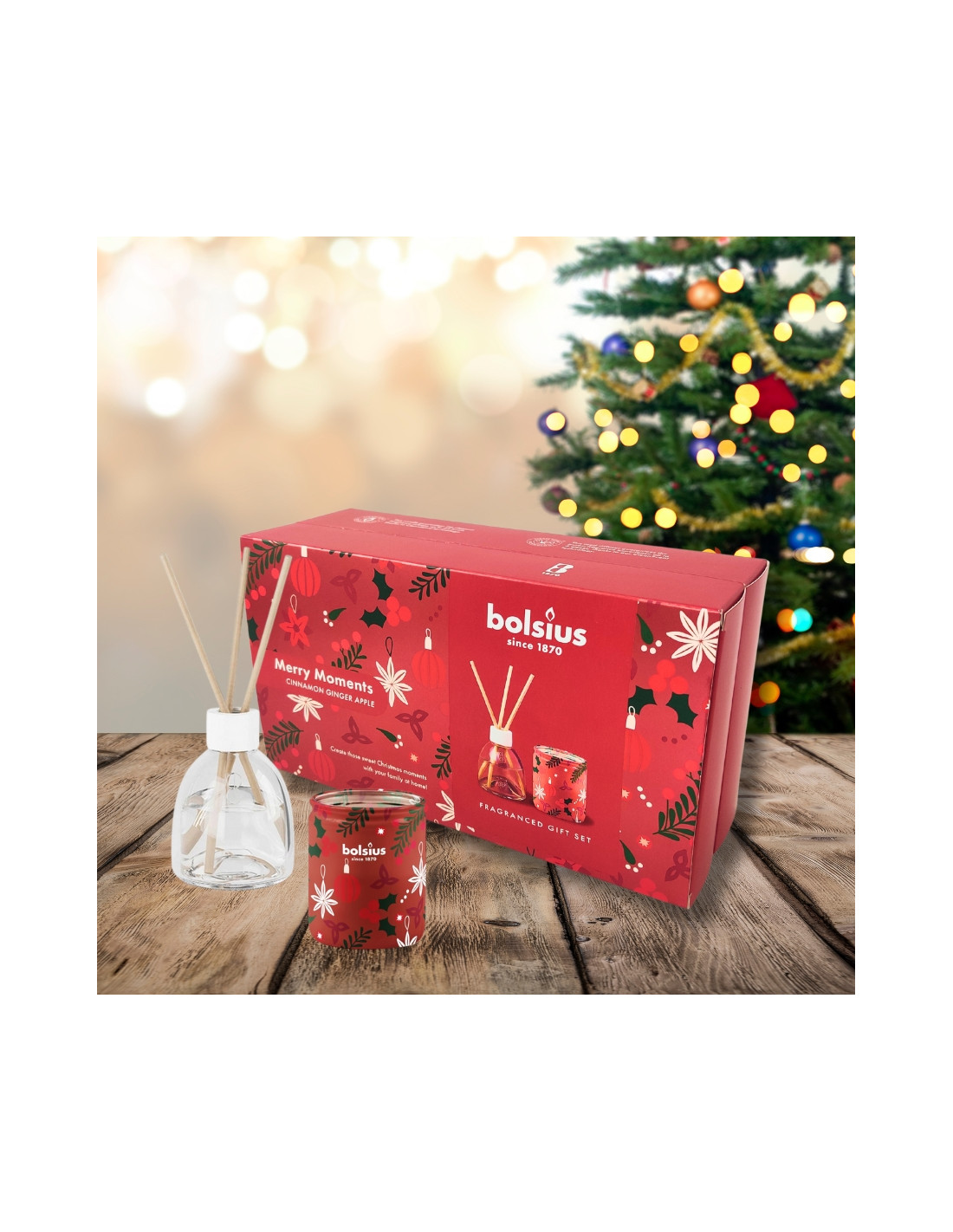 Štýlová vianočná sada Bolsius True Glow kombinuje elegantnú dekoratívnu sviečku s intenzívne voňavým difuzérom. Vôňa Merry Moments naplní miestnosť vôňou sviatočnej sladkosti, korenia a tepla domova. Je to perfektný doplnok do každej miestnosti a jedinečný darček, pripravený na darovanie.