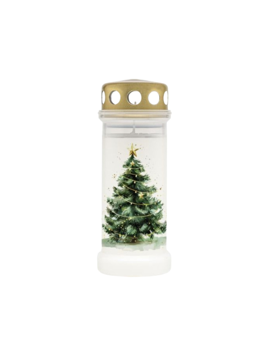 Eine Ortgusskerze aus Kunststoff in Golddesign von BOLSIUS . Mit einem schimmernden goldenen Weihnachtsbaum, geschmückt mit Sternen und Kugeln, verbindet die Kerze modernes Design mit klassischer Weihnachtssymbolik. Ein stabiler, breiter Fuß sorgt für Stabilität, während dicker, hochwertiger Kunststoff Langlebigkeit und Wetterbeständigkeit garantiert. Der goldfarbene Metalldeckel verleiht der Kerze eine raffinierte Note und unterstreicht die Eleganz, während palmölfreies Wachs die Kerze zu einer umweltfreundlichen Wahl macht. Sie kann als eigenständige Kerze oder zum Nachfüllen größerer Glaslaternen oder Laternen verwendet werden. Sie ist eine ausgezeichnete Wahl für alle, die Wert auf Ästhetik, Langlebigkeit und tiefe Symbolik legen.