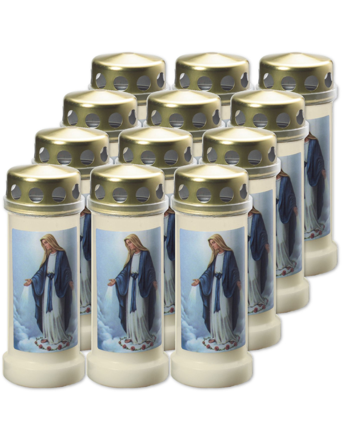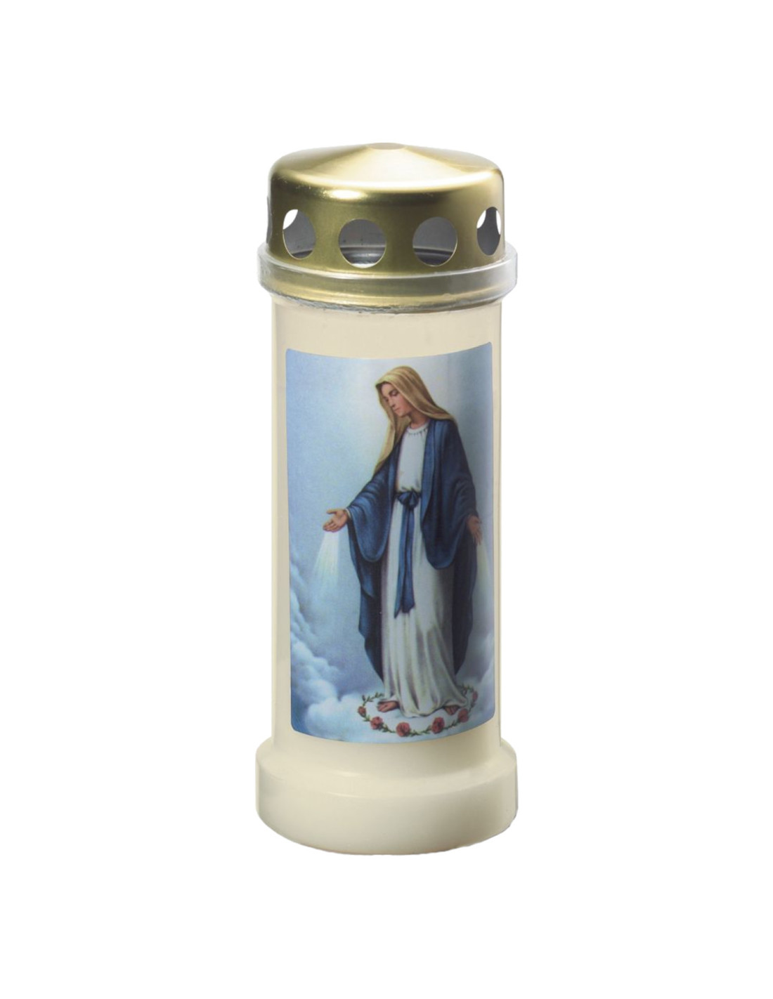 Ozdobne znicze z wizerunkiem Maryi. Dzięki dużej podstawie są bardzo stabilne, a za sprawą specjalnej konstrukcji oraz „kapturka” są doskonale chronione przed wiatrem i wodą. Eleganckie i nowoczesne, wspaniale prezentują się jako główna dekoracja nagrobków.