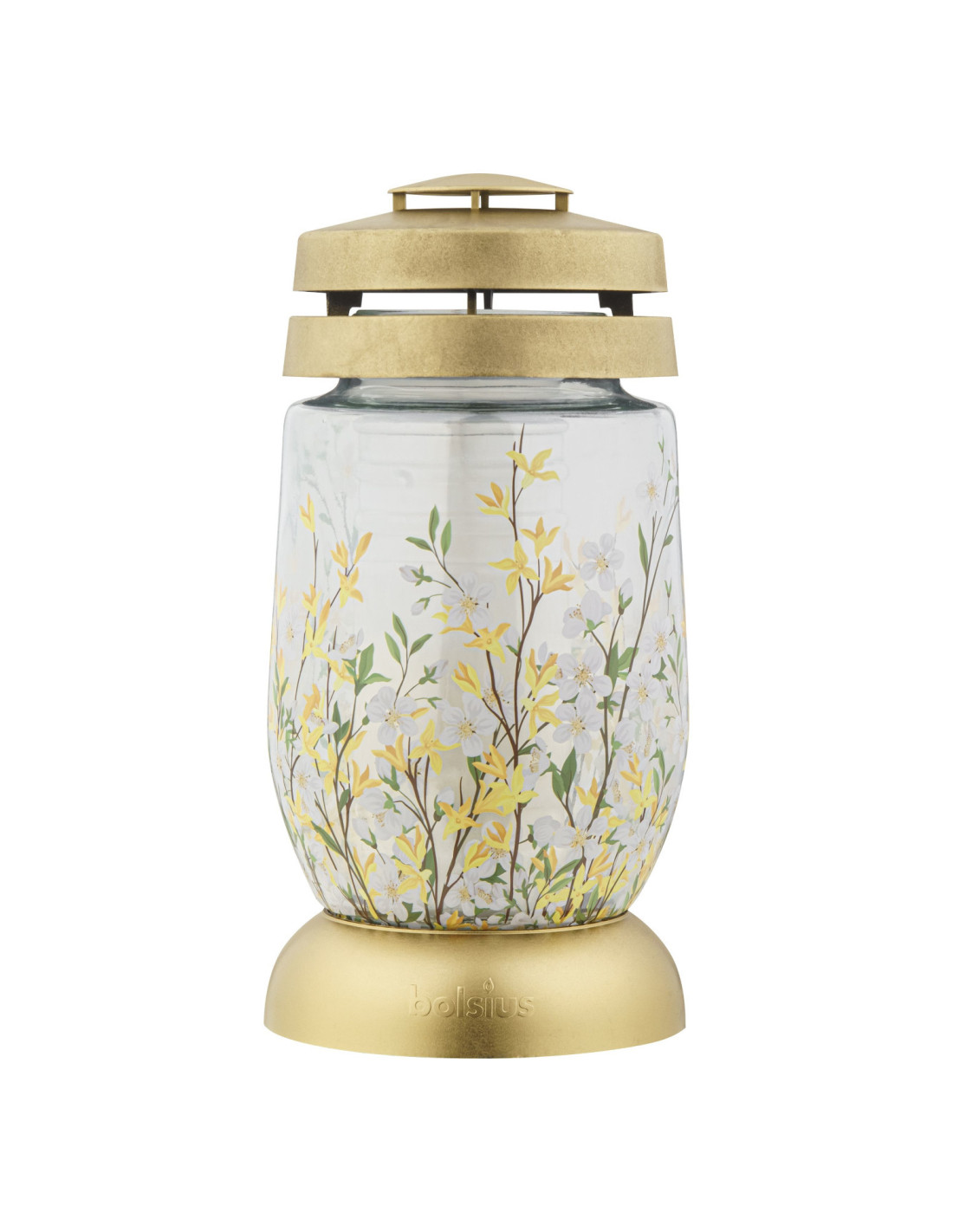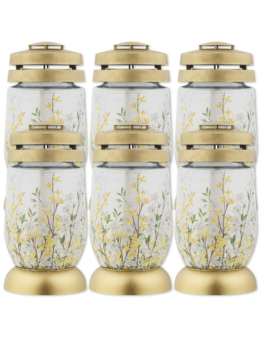 Ozdobne lampiony ze wzorem forsycji. Wykonane z wysokiej jakości przeźroczystego szkła, przez które pięknie widać płomień. Dzięki dużej podstawie są bardzo stabilne, a za sprawą specjalnej konstrukcji oraz „kapturka” wkłady w ich wnętrzu są doskonale chronione przed wiatrem i wodą. Eleganckie i nowoczesne, wspaniale prezentują się jako główna dekoracja nagrobków. Pasują do nich parafinowe i olejowe wkłady, które palą się nawet 4 dni.